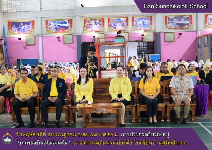 วันพฤหัสบดีที่ 24 กรกฎาคม 2568 (เวลา 08.50 น.) โรงเรียนบ้านสุไหงโก-ลก เข้าร่วมประกวดการขับร้องเพลงหมู่ บทเพลงรักแห่งแผ่นดิน ประจำปี 2568 ณ อาคารเฉลิมพระเกียรติฯ โรงเรียนบ้านสุไหงโก-ลก