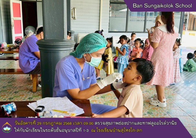 วันอังคารที่ 29 กรกฎาคม 2568 เวลา 09.00 น.โรงเรียนบ้านสุไหงโก-ลก ได้จัดโครงการ "เลี่ยนรัว มือง-ขาว" ฉบับที่ 51 โดยจัดกิจกรรมตรวจสุขภาพช่องปากและเคลือบฟลูออไรด์ฟันให้กับนักเรียน