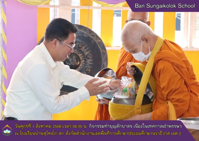 📅 วันศุกร์ที่ 1 สิงหาคม 2568 เวลา 07.45 - 09.00 น. โรงเรียนบ้านสุไหงโก-ลก ได้จัดกิจกรรมการทำบุญตักบาตร เนื่องในเทศกาลวันเข้าพรรษา ประจำปี 2568 ครั้งที่ 1 ณ เวทีสีส้ม